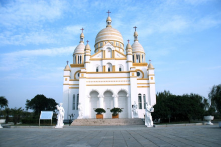 巴黎圣心教堂是典型的折衷主義風(fēng)格的建筑,建于1875年,1877年竣工。在19世紀(jì)中葉至20世紀(jì)初,折衷主義建筑是歐美一些國家流行的一種建筑風(fēng)格,19世紀(jì)中期以法國最為典型。這座建筑的穹頂和厚實的墻身呈現(xiàn)了拜占庭建筑的風(fēng)格,又兼取了羅曼建筑的表現(xiàn)手法。八里河的這座圣心教堂是由阜陽建筑設(shè)計院依據(jù)圖片,按比例建造的。