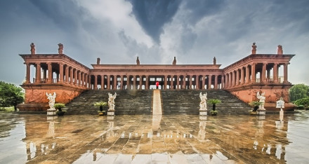 宙斯神廟原型位于希臘奧林匹亞村奧林匹亞山上,是為了祭祀宙斯而建,它是古希臘最大的神廟之一。八里河旅游區(qū)的宙斯神廟是依照復(fù)原的模型建造的,整座建筑鳥瞰成U型,上面覆蓋著錯層框架式屋頂。