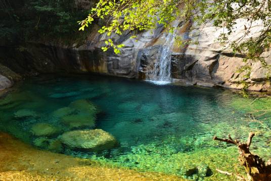 彩池隨周圍景色變幻、太陽(yáng)角度及光線明暗的不同,或晶明或翠綠,變化萬(wàn)千,絢麗多彩,宛如一顆顆翡翠灑滿谷中,故名翡翠谷。 在獲奧斯卡四項(xiàng)大獎(jiǎng)的影片《臥虎藏龍》中,竹稍打斗、池邊愛(ài)戀、飛瀑踏波等鏡頭都拍攝于翡翠谷。