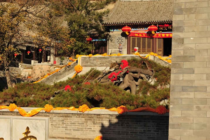 延壽寺 延壽寺,位于昌平區(qū)延壽鎮(zhèn)黑山寨村北兩公里,為三進(jìn)院落寺院,正門(mén)為三開(kāi)間的寺院大門(mén),莊重恢宏進(jìn)入寺院大門(mén),抬眼上望,一座漢白玉筑成的巨大“佛”字迎著朝陽(yáng),矗立在山崗上,在天空映襯下,顯得分外耀眼奪目。菩薩殿是延壽寺的第二重殿,面闊3間,進(jìn)深3間,殿內(nèi)供奉著漢白玉雕刻的釋迦牟尼像和碧玉觀音菩薩像。碧玉觀音菩薩像高1.2米,國(guó)內(nèi)少有,價(jià)值連城。大雄寶殿是延壽寺第三重殿,也是寺內(nèi)的主體建筑,殿內(nèi)供奉三尊佛,被稱作三世佛,使延壽寺成為佛、法、僧三寶俱全的寺院。 |