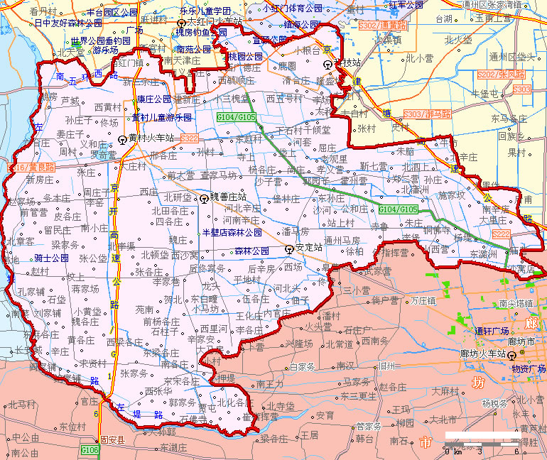 高米店街道 東到京開高速公路,西至京九鐵路東側(cè),南至康莊路、金星西路,北至北興路