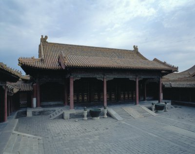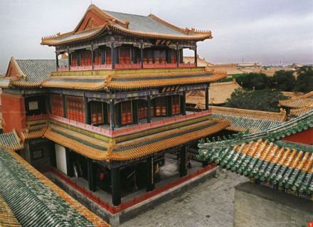 永和宮,內(nèi)廷東六宮之一,位于承乾宮之東、景陽宮之南。明代為妃嬪所居,清代為后妃所居。清康熙帝孝恭仁皇后久居此宮。其后,道光帝靜貴妃,咸豐帝麗貴人等先后在此居住。宮為二進(jìn)院,正門南向,名永和門,前院正殿即永和宮,面闊5間。明間開門,次、梢間皆為檻墻,上安支窗。正間室內(nèi)懸乾隆御題“儀昭淑慎”匾,吊白樘箅子頂棚,方磚墁地。東西有配殿各3間,明間開門,黃琉璃瓦硬山式頂,檐下飾旋子彩畫。東西配殿的北側(cè)皆為耳房,各3間。