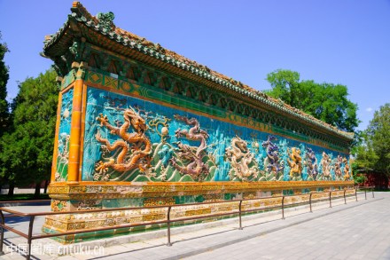 九龍壁位于故宮寧壽宮區(qū)皇極門外。壁長29.47m,高3.59m,厚0.459m,是一座背倚宮墻而建的單面琉璃影壁,為乾隆三十七年(1770年)改建寧壽宮時燒造。