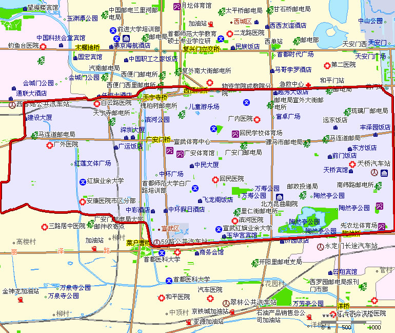 宣武區(qū)轄8個街道:大柵欄街道、天橋街道、椿樹街道、陶然亭街道、廣安門內街道、牛街街道、白紙坊街道、廣安門外街道。
