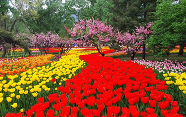 桃花園:建于1983年,占地面積4.2公頃,截止到2014年末,已收集展示觀賞桃花60余個(gè)品種5000余株,是世界上收集觀賞桃花品種最多的專類園。桃花園的觀賞桃花,從樹型上分有直枝桃類、帚桃類、壽星桃和垂枝桃類。從花型上看有單瓣型、梅花型、月季型、牡丹型和菊花型。主要品種有白花山碧桃、碧桃、絳桃、緋桃、紫葉桃、二色桃、人面桃、垂枝桃、壽星桃、灑金桃、菊花桃等品種。桃花花期自四月初一直開到五月初。