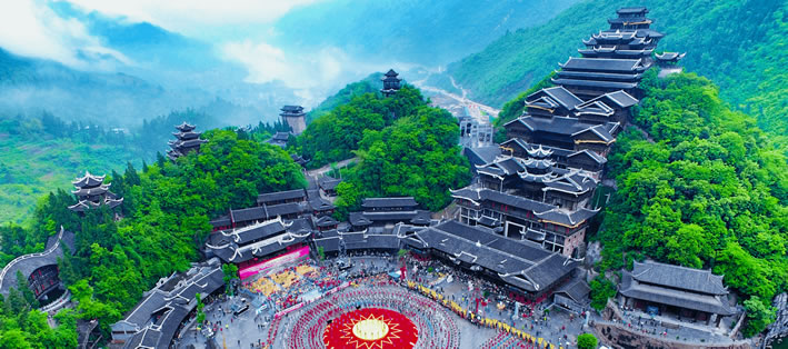 蚩尤九黎城,位于重慶市彭水苗族土家族自治縣靛水街道烏江邊。東隔摩圍山與彭水老城區(qū)相鄰,南接建設中的彭水新城,北至烏江并與湘渝高速下線互通。距彭水縣城8千米,距重慶市主城區(qū)175千米。