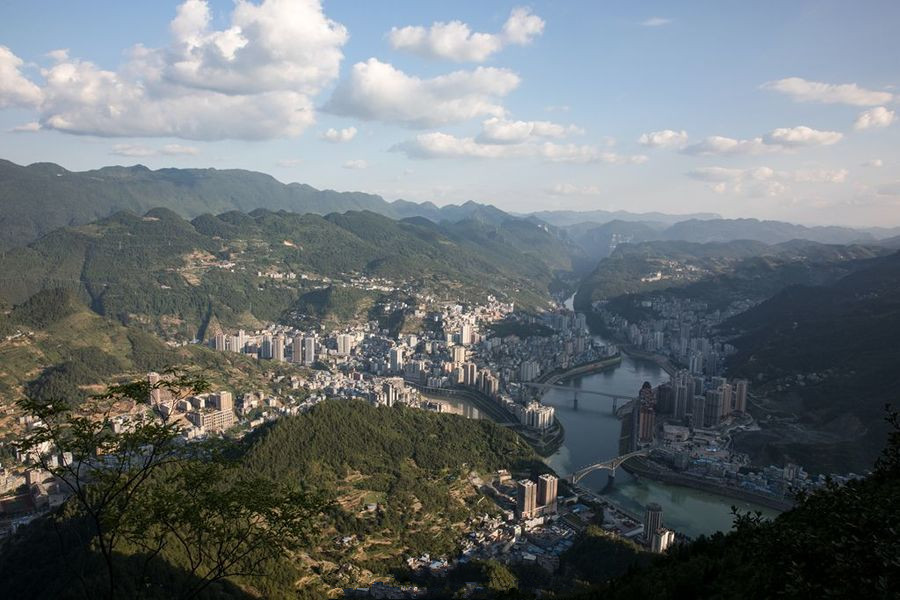 彭水縣,位于鄂黔隆起帶,向四川中臺坳下滑的斜坡上,形成西北高東南低的地勢特征。海拔190~1860米,相對高差1670米。地處武陵山區(qū),地勢西北高而東南低。地形分為構造剝蝕的中、低山地形。地貌類型復雜,自然環(huán)境各異,“兩山夾一槽”是彭水地貌的主要特征。各類地貌中丘陵河谷區(qū)占13.39%,低山區(qū)占52.83%,中山區(qū)占34.03%。