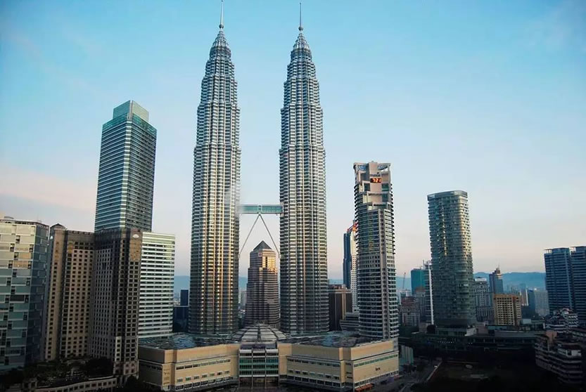 吉隆坡石油雙塔 吉隆坡石油雙塔(Petronas Twin Towers)曾經是世界最高的摩天大樓,仍是世界最高的雙塔樓,也是世界第十六高的大樓。坐落于吉隆坡市中心(Kuala Lumpur City Centre) 簡稱KLCC計劃區(qū)的西北角,屬于此計劃區(qū)的第一階段工程。 吉隆坡石油雙塔高452米,共地上88層,由美國建筑設計師西薩·佩里(Cesar Pelli)所設計的大樓,表面大量使用了不銹鋼與玻璃等材質。雙峰塔與鄰近的吉隆坡塔同為吉隆坡的知名地標及象征。