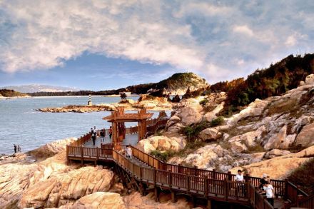 濱海木棧道是風(fēng)動石景區(qū)近年來投入開發(fā)的臨海棧道,供游人近距離感觸海洋魅力,欣賞海蝕景觀。
