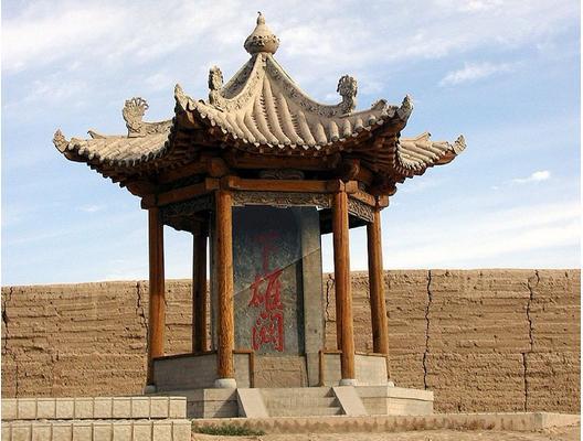 羅城初建于明弘治八年(1495年),由肅州兵備道李端澄主持修建!傲_城”是應(yīng)敵的正面,“凸”字形城墻全部用磚包砌,非常堅(jiān)固!傲_城”南北兩端建有“箭樓”,是觀望關(guān)西、關(guān)南、關(guān)北烽火的設(shè)施。兩端與外城墻相接,外城墻又與關(guān)城南北的長城相聯(lián)。