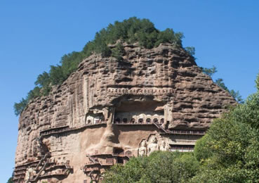 麥積山石窟坐落于西秦嶺東段,小隴山林區(qū)崇山峻嶺中,因山崖一峰突兀挺立,拔地而起,猶如農(nóng)家麥垛,故名麥積山。山高142m,頂端有隋代舍利磚塔,古老孑遺植物白皮松遍布塔周;懸崖絕壁上雕鑿著1600余年來的209個洞窟7866身泥塑石雕及1300多平米壁畫,為此麥積山石窟為中國四大石窟之一,有東方雕塑陳列館之稱。摩崖造像、凌空棧道與蒼松翠竹、赤壁丹崖相互映襯,有麥積煙雨等神奇景觀。