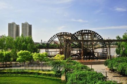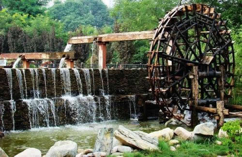 水車歷史悠久,外形奇特,起源于明朝,是蘭州市古代黃河沿岸最古老的提灌工具。蘭州水車,又叫“天車”、“翻車”、“灌車”、“老虎車”,園內(nèi)由雙輪水車、圍堰、水磨坊服務(wù)室和游樂(lè)區(qū)組成,立于黃河南岸,旺水季利用自然水流助推轉(zhuǎn)動(dòng);枯水季則以圍堰分流聚水,通過(guò)堰間小渠,河水自流助推。當(dāng)水流自然沖動(dòng)車輪葉板時(shí),推動(dòng)水車轉(zhuǎn)動(dòng),水斗便舀滿河水,等轉(zhuǎn)至頂空后再傾入木槽,源源不斷,流入園地,以利灌溉。水車園再現(xiàn)了水車這種古老的水利機(jī)械,可以使中外游人一睹為快。