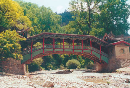 經(jīng)明末戰(zhàn)亂之后,山里的香客已經(jīng)絕跡,只留下寂靜的空山。谷內(nèi)原有一座臥橋,當(dāng)時(shí)已被洪水沖毀,只剩下兩個(gè)橋墩。劉一明觸景生情,無(wú)限感傷,立志要把此山修整一番,恢復(fù)“興隆”勝跡。于是他行醫(yī)治病,為興隆山募集資金。經(jīng)過(guò)多年的努力,在山上修建了百十座殿閣亭樓,還架起了一座宏偉的木拱橋,當(dāng)時(shí)取名“迎善橋”,意思是迎接八方的善士。從此,興隆山的香火四季不衰。后來(lái)山洪暴發(fā),橋又被沖跨,劉一明非常惋惜,束手無(wú)策。他有一個(gè)徒弟叫唐童,一天在邊采藥,見(jiàn)有人落水,便不顧一切地下水搭救,救上岸一看,是個(gè)又瞎又聾的老婆婆。唐童沒(méi)有嫌棄老人,而是替她換好衣裳,找來(lái)許多食物給她吃。老婆婆覺(jué)得唐童善良,就送給他一根三寸長(zhǎng)的麥秸,說(shuō)遇到河流擋路,它可以當(dāng)橋。唐童接過(guò)麥秸,正要道謝,老婆婆忽然不見(jiàn)了。唐童想驗(yàn)證老婆婆的話,來(lái)到河邊,把麥秸放在河上,轉(zhuǎn)眼間就成了一座精美的橋。從此,這座橋再也沒(méi)有被洪水沖跨過(guò)。