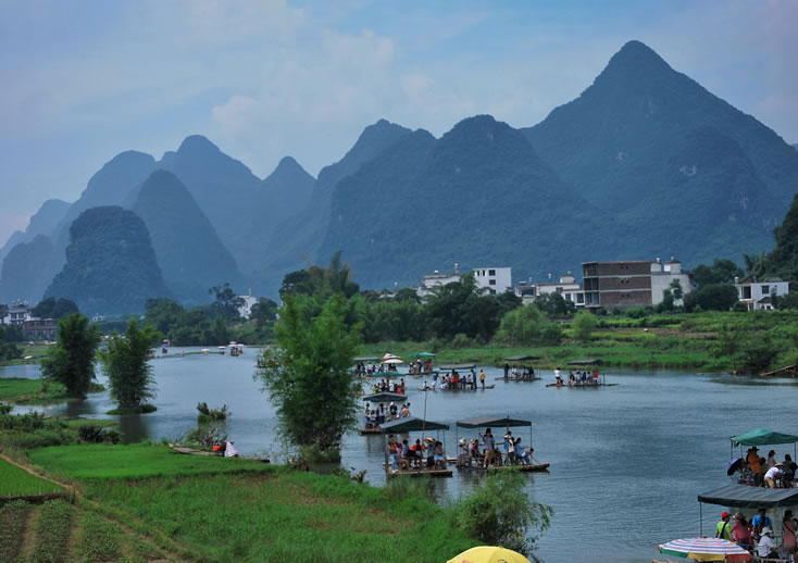水文 陽朔縣境內(nèi)河流大多自西北而流向東南。巖溶區(qū)內(nèi)石山林立,海拔200~500米,相對高差50~300米。石山間容蝕洼地、峰林谷地、河流沖積平地交錯分布,地勢較平坦。