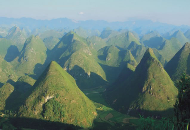 地形地貌 鳳山位于云貴高原南緣,是一個由高原向準平原過渡的斜坡地帶,地勢大致呈西部和西北部向東南部傾斜,東北部向東北角傾斜。全縣地形起伏,最高海拔1318米,最低海拔262米,最大高差為1056米,一般高差300~500米。鳳山多山,溝壑縱橫,有長期性的流水在境內匯集成河。沿河兩岸,地勢平緩,有長條形的或珠串狀排列的小平地。小平地土層深厚,土壤肥力良好,是縣內水稻主產(chǎn)區(qū)。