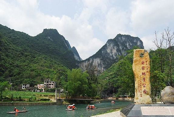 廣西樂業(yè)-鳳山世界地質公園,位于廣西西北部云貴高原向廣西盆地過渡的斜坡地帶,由百色市樂業(yè)大石圍天坑群國家地質公園和鳳山巖溶國家地質公園組成,總面積930平方千米,F(xiàn)已發(fā)現(xiàn)大小天坑30個,是世界上最大的天坑群之一。地質公園區(qū)中鳳山三門海景區(qū)擁有高穴馬王洞和水上天坑等地質遺跡。天坑群中以大石圍天坑規(guī)模最大,深度和容積居世界第二;坑底森林面積10.5 萬平方米。