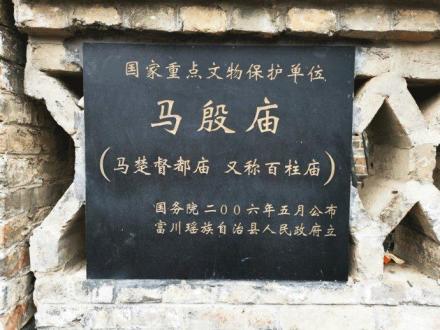 馬殷廟位于賀州市富川瑤族自治縣朝東鎮(zhèn)福溪村,始建于明代永樂十一年(1413年),廟內的設計排列十分有序,分為明間、正間、次間、稍間,兩邊都各設廂房,是目前在南方瑤族地區(qū)年代最早、規(guī)模最大、保存得最完整、構件帶有較多宋式風格的木結構古建筑。2006年5月25日,馬殷廟被中華人民共和國國務院公布為第六批全國重點文物保護單位。