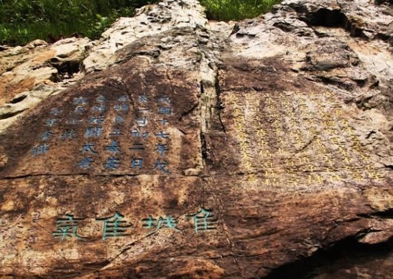 銅盆山摩崖石刻在中渡鎮(zhèn)舊縣村后銅盆山石壁上,為明萬(wàn)歷年間刻石,又稱平蠻碑記。上方刻“一方保障”四字,馬龍川書。碑文記載萬(wàn)歷元年、二年(公元1573年一1574年)統(tǒng)治者調(diào)集左右兩江及湖浙官兵10萬(wàn)名,鎮(zhèn)壓懷遠(yuǎn)、洛容、柳城、永寧、永福、陽(yáng)朔、荔浦等地農(nóng)民起義情形。又刻石隆慶年間五言律詩(shī)兩首,追述鎮(zhèn)壓韋銀豹農(nóng)民起義。
