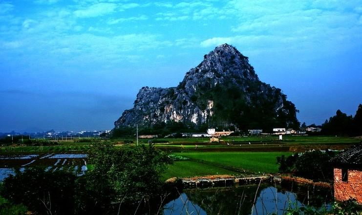 在靈山縣三海鎮(zhèn)梓崇村馬鞍山,山為喀斯特孤峰,形似馬鞍,山下有東勝巖、葡地巖和盡頭巖三洞。 1960年,廣東師院、廣東省文物管理委員會考古隊和中國科學(xué)院古脊椎與古人類研究所賈蘭坡、顧玉珉、顧閻等在東勝巖發(fā)現(xiàn)1塊顳骨的鼓室部、兩顆牙齒和一段左側(cè)股骨上段,在葡地巖發(fā)現(xiàn)1塊頂骨和3塊額骨,東勝巖還出土熊的化石和鈣化蝸牛,葡地巖出土中國犀牛、野豬、鹿和牛化石,專家研究鑒定為更新世末期的人骨化石,命名為靈山人化石出土地點,此外,還在石背山洪窟洞古人類遺址,出土1塊頂骨、1塊髖骨、1枚上臼齒、2枚板齒,代表老年個體、屬舊石器時代,在石塘鄉(xiāng)鐘秀山滑巖洞遺址,發(fā)現(xiàn)10塊頭骨、70枚牙齒、1塊髖骨、1件穿孔石珠和一些網(wǎng)紋、繩紋陶片,研究鑒定為新石器時代的人骨。 1962年2月廣東省靈山縣綠水公社綠水村社員在一處山坡上挖出了一件銅鼓,廣東省文物管理委員會得知后,派員至現(xiàn)場作了調(diào)查,并將銅鼓運(yùn)回廣州,發(fā)現(xiàn)銅鼓的山崗很高,約二百余米,銅鼓就埋在半山坡距地面約三四十米的地方,在山崗周圍沒有發(fā)現(xiàn)什么古代文化遺址或墓葬,附近也沒有找到什么共存遺物,只在銅鼓內(nèi)殘存的泥土中找到了一枚唐代的開元通寶,說明這只銅鼓是在唐代或以后才被埋入土中,銅鼓很大,面徑81、通高47厘米,除足部稍。
