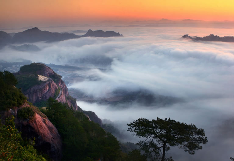 明澈的河水、潔凈的沙灘、深幽的峽谷、青蔥的竹林、神秘的山寨、鬼斧神工的丹霞景觀、古樸天成的村落,融合了自然的鐘秀、文化的氣韻和歷史的滄桑,使得整個(gè)景區(qū)獨(dú)具特色,魅力無(wú)窮。
