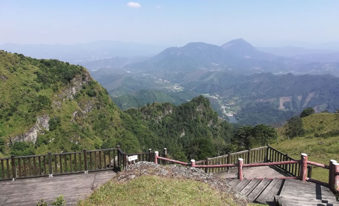天龍頂國家山地公園位于岑溪市南渡鎮(zhèn),占地面積15平方千米。景區(qū)主峰天龍頂海拔1221米,相對高度221米,屬云開大山山脈的主峰。景區(qū)內(nèi)海拔高于1000米以上的山峰還有石豹頂、公婆頂、湖廣頂?shù)人淖椒。景區(qū)的自然資源具有多樣性,景區(qū)內(nèi)有高山湖泊、原始森林、溝壑峽谷、溪谷瀑布群、海拔1000米之上的高山草甸、海拔1200多米的丹霞山峰、延綿近數(shù)十里的斷層崖壁等等,形成了一個具有旅游觀光、休閑度假、戶外運動等多功能的復(fù)合型景區(qū)。同時,天龍頂國家山地公園也是一個純天然自然氧吧,空氣中負離子含量高達35000個/立方米。