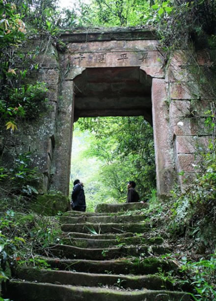 丙安村古寨門分東華門和太平門,分別位于丙安鄉(xiāng)古景社區(qū)東端、西端。清代所建,面積25平方米。為拱形石門。東華門高3.1米、寬2.2米、厚度為1.2米,另有木門兩扇用于關(guān)閉寨門之用,單扇木門寬為1.2米。太平門高2.4米、寬2.3米、厚度為1.5米,出寨門向西下坡是一條總長63米的石梯,每梯長1.7米、寬0.3米、高0.15米,右側(cè)有高為0.7米的條石護(hù)欄,呈階梯型向下延伸通向古碼頭。