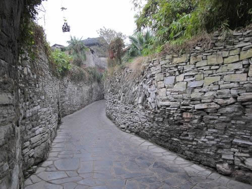 院落:青巖古鎮(zhèn)大戶人家的院落并不十分闊綽,一般是三合院,有小朝門、石院壩、花壇、石凳、小軒窗,簡樸、寧靜而有書香氣。小巷住著尋常百姓人家,巷子兩邊的墻多用毛石堆砌或用土筑,墻上布滿綠草、青苔,偶爾伸出幾枝花果,恬淡而有山野味,顯得年代相當(dāng)久遠(yuǎn)。