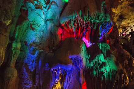 洞內(nèi)滿布玲瓏剔透,形態(tài)各異的鐘乳石,千姿百態(tài)。讓人流連忘返,其中較著名的景點有:”猴子撈月“、”藏經(jīng)閣“、”千年等一回“、”春滿人間“等。