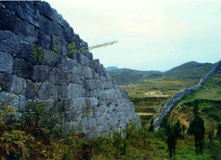 經(jīng)過600多年風(fēng)雨侵蝕,露出部分的石面全部呈青黑色,與城垣周圍石質(zhì)各異。據(jù)專家考證,砌筑城垣所用石料,全從山下采集,鑿成料石,然后一塊一塊運上山,整個工程浩大。
