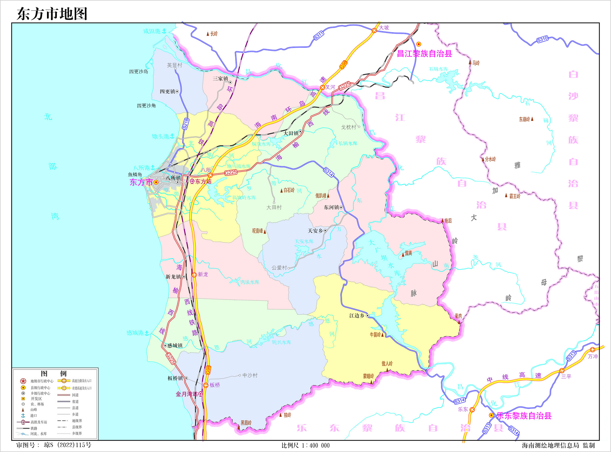 東方市下轄8個(gè)鎮(zhèn)、2個(gè)鄉(xiāng)、1個(gè)農(nóng)場(chǎng):