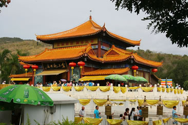 三亞南山寺位于三亞南山文化旅游區(qū)內(nèi),是一座仿盛唐風(fēng)格、居山面海的大型寺院。南山寺是已故中國佛教協(xié)會(huì)會(huì)長趙樸初親臨選址,經(jīng)國家宗教局批準(zhǔn),于1995年11月11日奠基,1998年4月12日建成。現(xiàn)有仿唐建筑仁王殿、天王殿、鐘樓、轉(zhuǎn)輪藏、東西爬山廊、東西配殿、金堂等建筑群,總建筑面積5500㎡。整個(gè)建筑氣勢恢宏,為中國近五十年來新建的最大佛教道場,也是中國南部最大的寺院。自古名寺出高僧,南山寺的方丈是86歲高齡的高僧新成大和尚,監(jiān)院是中國佛教協(xié)會(huì)副會(huì)長明生法師。南山寺第二期工程已啟動(dòng)。按照規(guī)劃設(shè)計(jì),第二期工程遵循古代大型佛教寺院方正劃一、主次分明的特點(diǎn),將主要建筑集在中軸線上,在兩側(cè)設(shè)置12個(gè)不同功能的四合院。二期工程完成后,整個(gè)南山寺東西寬188米,南北長416米,共8個(gè)臺(tái)階總高差49米,總建筑面積4萬平方米。