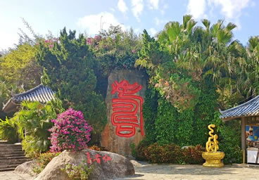 長壽谷,也叫鰲山壽谷,位于南山東麓,其地貌依攀山勢,呈谷狀縱伸。谷線全長2300米,堪稱熱帶雨林奇觀。其間鳥鳴不斷、溪水長流、林木郁郁蔥蔥、巖石突兀奇特。設(shè)計(jì)者巧用天然形勝,從不同角度,以“流動(dòng)”和“靜止”的狀態(tài)揭示著傳統(tǒng)“壽”文化的內(nèi)核,融匯福壽文化于熱帶雨林奇觀。其主要景觀包括:“無量壽佛”、“流水尊者”;著名書法家啟功先生所書之“壽比南山”巨大石刻、“百歲階”、“賀壽堂”等,無一不體現(xiàn)中國傳統(tǒng)文化中增福添壽的美好祈福。是老年游客必游覽駐足的景點(diǎn)。