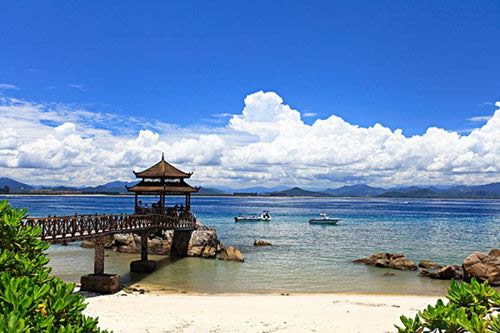 亞龍灣是海南省三亞市東郊的一處優(yōu)質(zhì)熱帶海濱風景區(qū),沙灘平緩開闊,沙粒潔白細軟,海水清澈澄瑩,海底資源豐富,生長眾多原始熱帶植被,頗具熱帶海島風情。海灣距離市中心區(qū)約10公里,以野豬島為中心,南有東洲島、西洲島,西面有東排、西排,可開展多種水上運動。