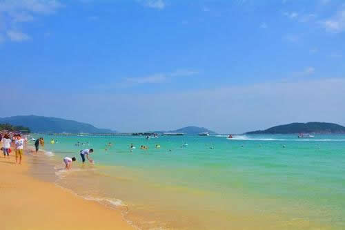 亞龍灣為一個月牙灣,擁有7千米長的銀白色海灘,沙質(zhì)相當細膩。而這里的南海沒有受到污染,海水潔凈透明,遠望呈現(xiàn)幾種不同的藍色,而水面下珊瑚種類豐富,可清楚觀賞珊瑚,適合多種水面下活動包括潛水等,令海底成為了當?shù)氐穆糜蔚暮诵。岸上林木郁郁蔥蔥。冬季這里的氣溫27攝氏度,水溫20攝氏度,是一處理想的冬季避寒和休閑度假勝地。號稱“東方夏威夷”。沿海岸一帶布滿多座高級酒店,包括國際五星級的假日酒店。