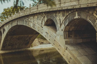 一、敞肩圓弧拱:兩個拱肩部分各建兩個對稱的小拱,伏在主拱的肩上。符合結(jié)構(gòu)力學(xué)原理,增加排水面積16.5%,節(jié)省石料。