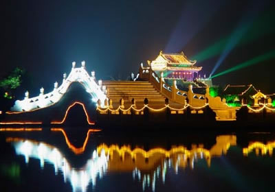 開封是中國六大古都之一,作為北宋王朝的都城達167年之久。當(dāng)時的宋京極為繁盛,宮殿建筑很輝煌。可惜金人侵占開封時,宋皇宮建筑大部分被燒毀了。后來,又經(jīng)過多次兵燹和黃河決堤,宏偉的宮室已蕩然無存。在過去皇宮遺址上只留下了龍亭公園這座的建筑物,而這座龍亭公園卻是清代所建。龍亭公園坐北朝南,高踞在臺基之上。從地面到大殿有72級臺階。臺階中間是雕有云龍圖案的石階。登上平臺,四周有石欄圍繞。大殿是木結(jié)構(gòu),重檐歇山式建筑,很壯觀。游人登上平臺,入殿觀看陳列的文物后,多在石欄前眺望開封古城景色。龍亭公園前有一條筆直的大道,道旁有兩個東西對峙的湖,東為潘湖,西為楊湖。傳說,東湖為宋朝“太師”潘美的府第,他陷害忠良,是個奸臣,宅院里的湖,水是渾的;西湖為宋朝搞遼名將楊業(yè)的府第,他舍身救國,是個忠臣,宅院里的湖,水是清的。這個說法沒有科學(xué)根據(jù),但反映了人們對忠奸的態(tài)度和感情,F(xiàn)在龍亭公園,潘、楊兩湖,以及龍亭公園后面的假山花園,都辟為龍亭公園公園。從龍亭公園前的大道,過潘、楊兩湖,再往南,仍是一條筆直的大道,兩旁店鋪林立,這條大道歷史上是一條寬闊的御道。