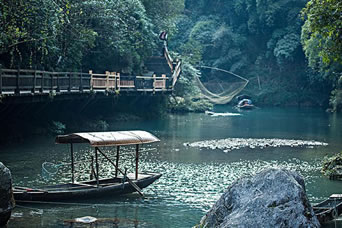 其中三峽人家風(fēng)情項(xiàng)目又分為水上人家、溪邊人家、山上人家和今日人家。古往今來,歷代文人騷客寫下了許多優(yōu)美的詩文,如,唐代李白,北宋歐陽修、蘇轍、黃庭堅(jiān),南宋陸游,清代張之洞,還有現(xiàn)代大詩人郭沫若等等。詩人們用他們的靈性之筆,或?qū)懭龒{人家,或?qū)憴┞暦,或(qū)懜蝮「嗜,或(qū)懬嗌斤w瀑,或?qū)懶惴迤媸x了這些詩篇,恍若身臨其境,飽覽了三峽人家石牌的神奇景色和濃郁風(fēng)情。