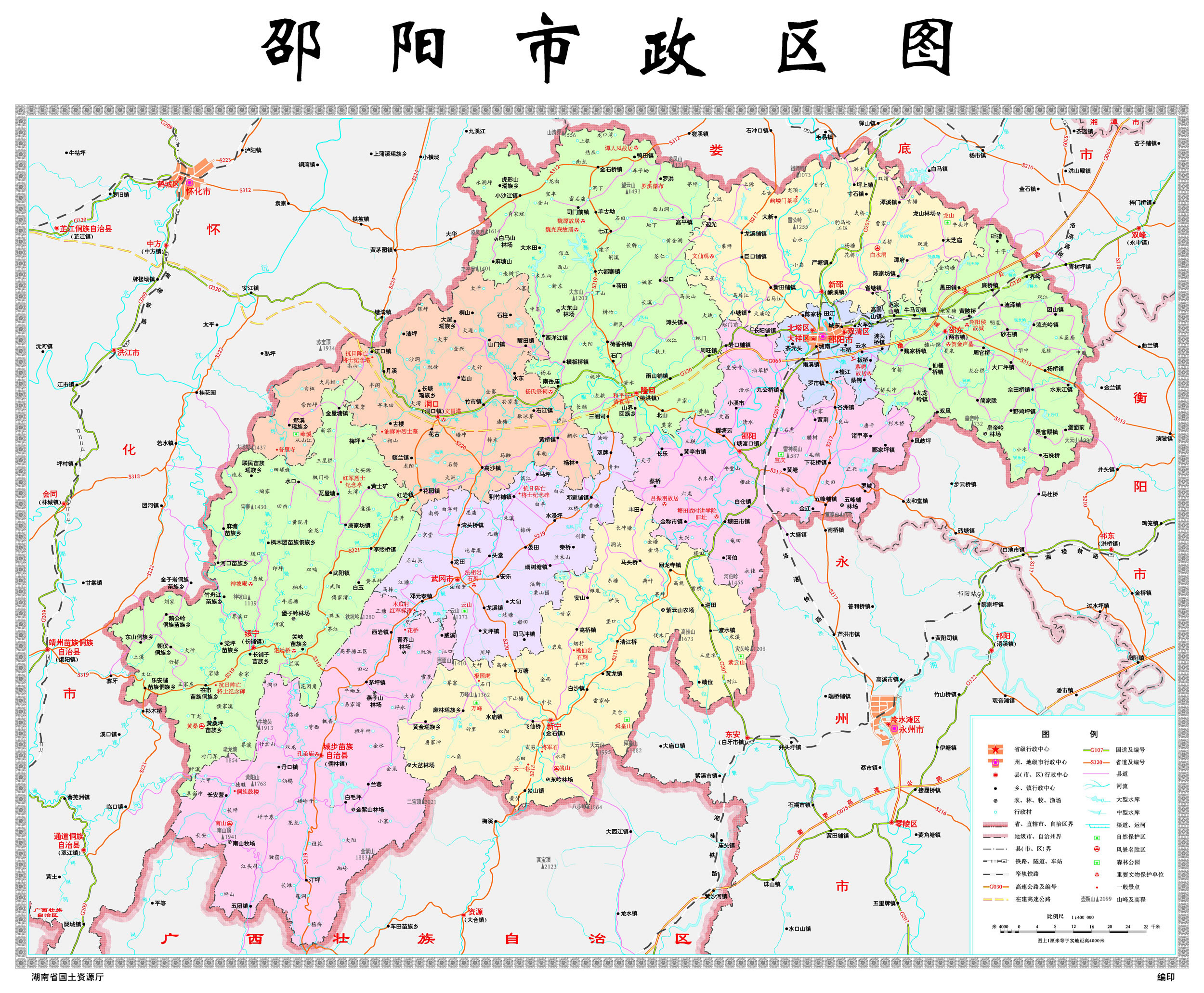 邵陽市轄3個(gè)區(qū)、6個(gè)縣、1個(gè)自治縣,代管2個(gè)縣級市;