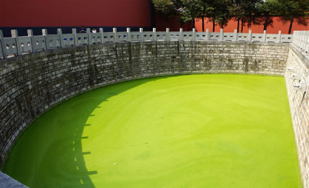 宮墻內(nèi)為泮池,兩江總督李鴻章命江寧知府涂宗瀛在朝天宮前建泮池,是文廟的標(biāo)志性建筑,池壁和護(hù)欄都系青石所建,南側(cè)有涵洞,池內(nèi)終年碧水清波。墻內(nèi)有按原樣恢復(fù)的半月形泮池,圍以青石欄桿,池內(nèi)碧水清波。
