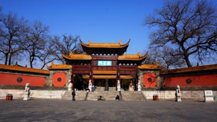 “萬(wàn)仞宮墻”照壁面臨運(yùn)瀆,全長(zhǎng)近百米。照壁南側(cè)有四個(gè)磚刻大字“萬(wàn)仞宮墻”,每個(gè)字約1米見方。仞,是度量單位,我國(guó)古代八尺或七尺叫做一仞。“萬(wàn)仞宮墻”出自《論語(yǔ)·子張篇》:“……夫子之墻高數(shù)(萬(wàn))仞,不得其門而入”,意思是贊喻孔子知識(shí)淵博,道德文章水平非常之高。