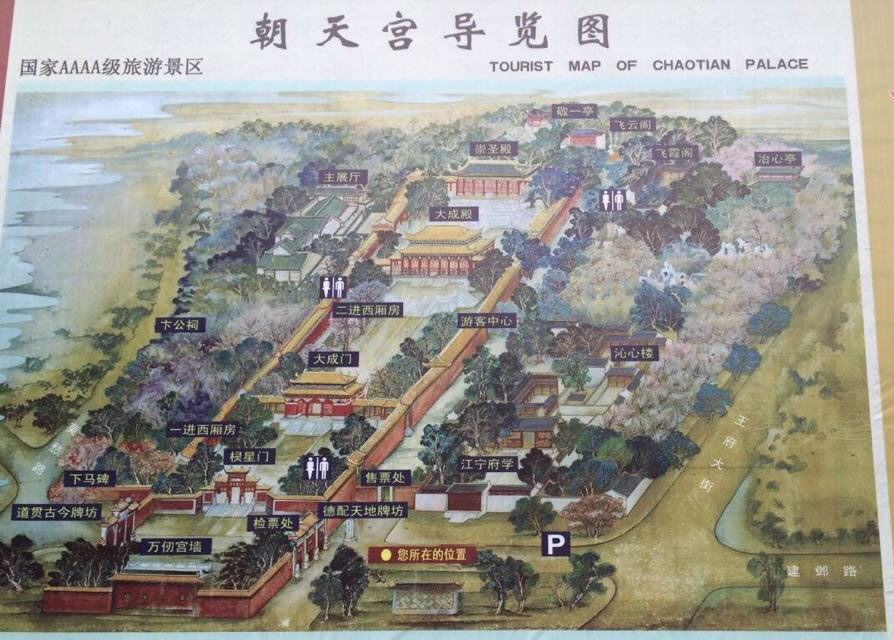 清朝道光年間因朝天宮屢遭火災(zāi),當(dāng)時(shí)風(fēng)水家把朝天宮大山門由朝正東,改為偏向東南。
