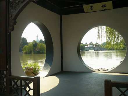 建于清乾隆二十二年(1757年),仿北京北海的五龍亭和十七孔橋而建!吧辖ㄎ逋、下列四翼,橋洞正側(cè)凡十有五!苯ㄖL(fēng)格既有南方之秀,也有北方之雄。中國著名橋梁專家茅以升教授曾評價說:“中國最古老的橋是趙州橋,最壯美的橋是盧溝橋,最秀美的、最富藝術(shù)代表性的橋,就是揚州的五亭橋了”。中秋之夜,可感受“面面清波涵月影,頭頭空洞過云橈,夜聽玉人簫”的絕妙佳境。
