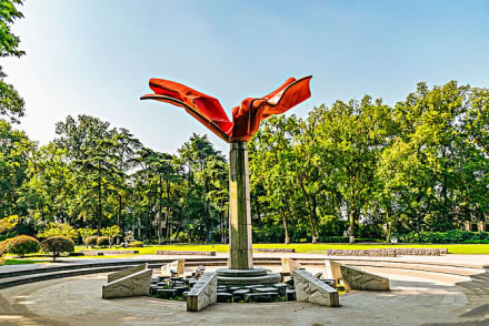 月季園位于環(huán)洲東端,占地約7200平方米。栽植月季5000多株,200多個(gè)品種,有樹狀月季、藤本月季、大花月季、微型月季等種類,是南京市著名的月季專類園。月季園中央挺立著的一棵200年樹齡的銀杏,是南京市保護(hù)的古樹名木之一。