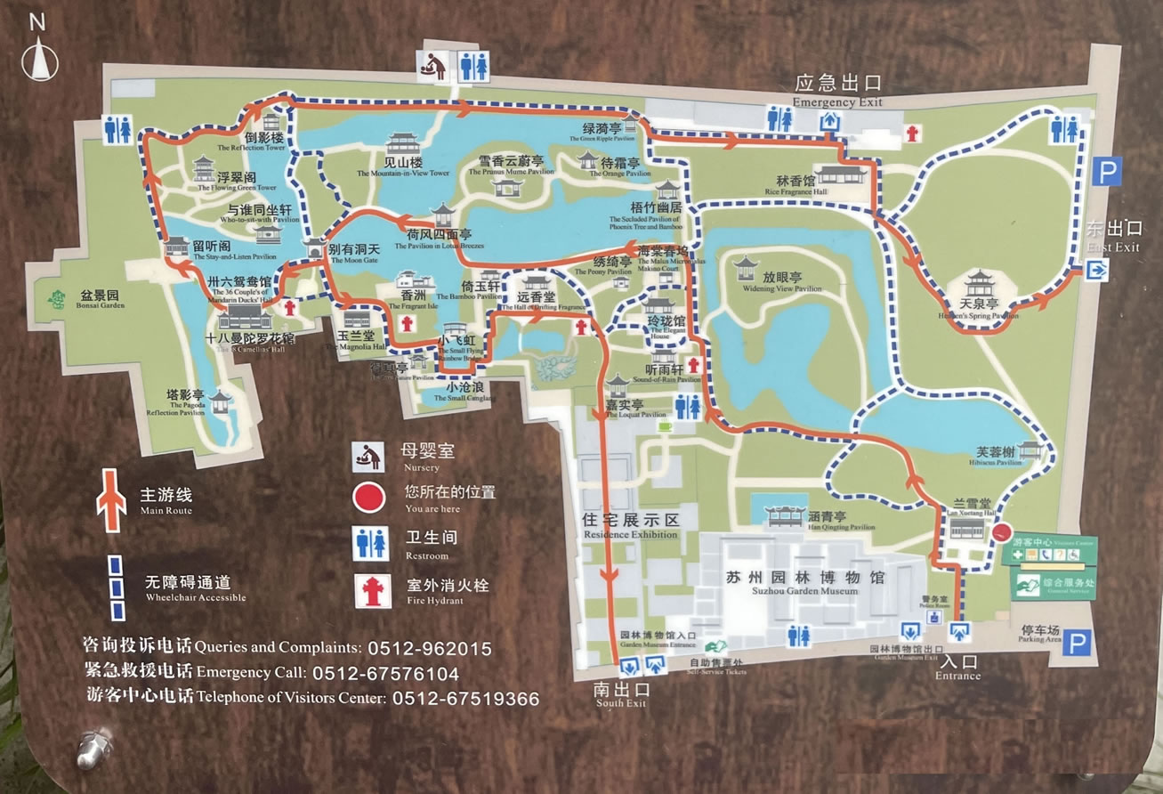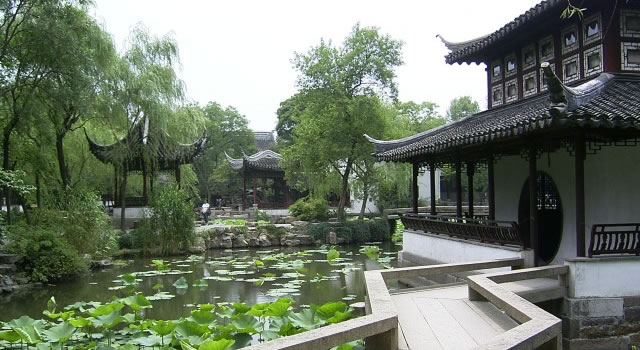 拙政園位于蘇州市婁門(mén)東北街178號(hào),占地60畝,是一座始建于公元十五世紀(jì)初的古典園林,是江南古典園林的代表。晉代文人潘岳《閑居賦》中有“灌園鬻蔬,以供朝夕之膳,是亦拙者之為政”之句,拙政園即取其之意而命名。經(jīng)過(guò)幾百年的蒼桑變遷,現(xiàn)存建筑大多為太平天國(guó)及其后修建,但明清舊制大體尚在,拙政園仍保持著平淡疏朗、曠遠(yuǎn)明瑟的明代風(fēng)格,被譽(yù)為“中國(guó)私家園林之最”。