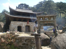時(shí)至唐朝,道教被朝廷奉為國教,士穿行往返于大江南北,三清山風(fēng)景名勝區(qū)的道教也隨之興盛起來,香火不斷,朝山香客絡(luò)繹不絕。唐(周)圣元年(639),朝廷為了加強(qiáng)統(tǒng)治,割衢州須江(今稱為江山市)之南鄉(xiāng)、常山之西鄉(xiāng)和饒州弋陽之東鄉(xiāng),設(shè)玉山縣,遂將三清山風(fēng)景名勝區(qū)劃為玉山縣所轄。其后,方士將化緣所得,在葛洪結(jié)廬煉丹之處營建了三清山風(fēng)景名勝區(qū)上第一座道教建筑--老子宮觀(此觀被稱為“三清福地”),進(jìn)一步鞏固了三清山風(fēng)景名勝區(qū)在道教史上的重要地位。北宋寧真宗篤信道教,奉老子為太上老君混元上德皇帝。此時(shí),在三清山風(fēng)景名勝區(qū)一帶開始出現(xiàn)成批的道教建筑。方士們?yōu)榱思o(jì)念葛洪開山之功,在山上建起了葛仙觀,內(nèi)中供奉葛仙翁和李尚書石像;同時(shí)建起的還有福慶觀、靈濟(jì)廟。尤其值得一提的是,方士們在天門峰的懸崖之上,用天然花崗巖雕干砌成一座六層五面的風(fēng)雷塔,此塔歷盡千年風(fēng)雨,至今巍然不動(dòng),被譽(yù)為三清山道教建筑中的一顆燦爛明珠。