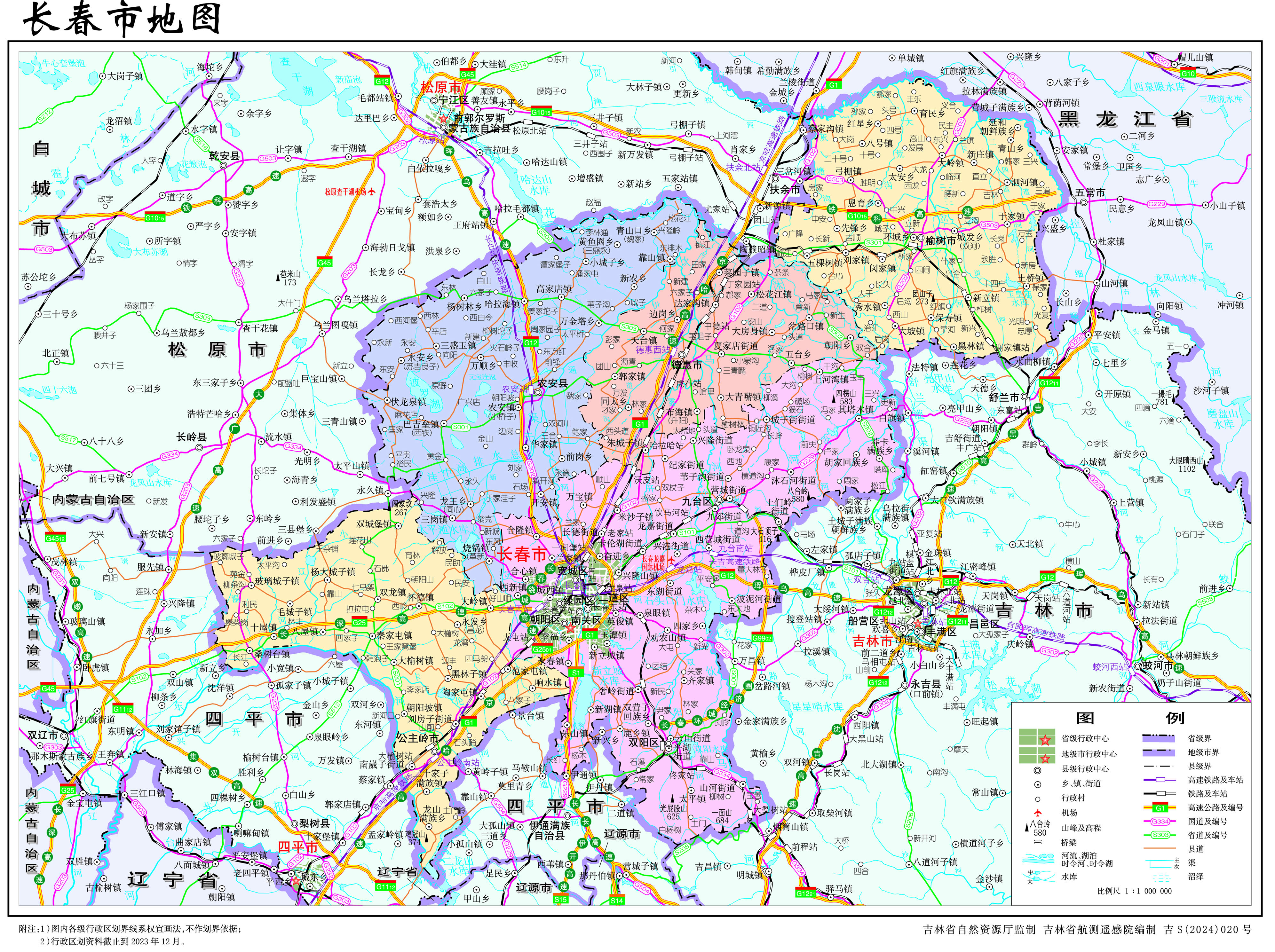 長(zhǎng)春市轄7個(gè)市轄區(qū)、1個(gè)縣,代管3個(gè)縣級(jí)市:
