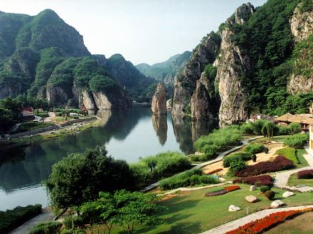 所謂北溝,指的是英納河流經(jīng)的溝谷,而南溝則是指小峪河流經(jīng)的溝谷,冰峪的主要景點大都被兩條河貫穿著。英納河是滿語“因納輝”的音譯,意為美麗的地方,河長94.9公里,是莊河境內(nèi)最長的一條河流。莊河市的淡水資源占大連地區(qū)首位,而英納河的淡水則在莊河市的首位。為了增加碧流河水庫的容量,大連市已于2001年5月引英納河的水進(jìn)入了碧流河水庫。據(jù)化驗,在英納河水中含有23種微量元素,具有抗癌和健身爽膚等多種功效。冰峪石林地貌比較集中,山峰連成一片,而有的地方卻是孤峰突兀,頗有點小桂林的味道。又有人稱其為“天然大盆景園”,因為景區(qū)內(nèi)有“大象吸水”、“金雕”、“豬馱龜”等許多奇景。