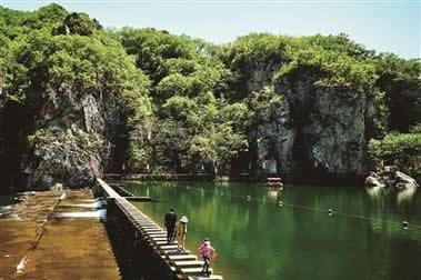 是冰峪石林地貌比較集中的地方,這里孤峰突兀,頗有點小桂林的味道。有人稱其為“天然大盆景園”,因為景區(qū)內(nèi)有大象吸水、金雕、豬馱龜?shù)仍S多奇景。