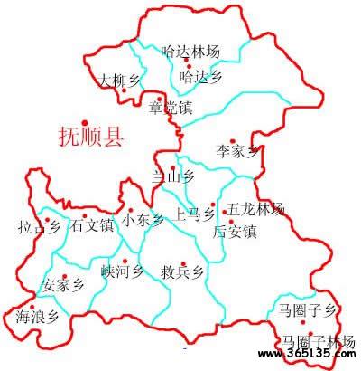 撫順縣轄4個(gè)鎮(zhèn)、6個(gè)鄉(xiāng)、2個(gè)民族鄉(xiāng):