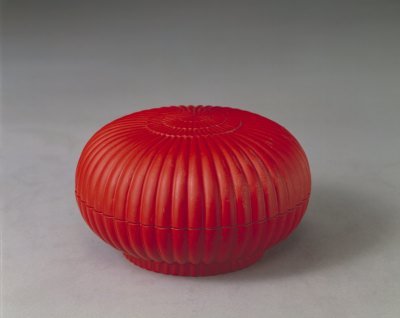 乾隆款朱漆菊瓣盒:此盒制作于清乾隆四十一年,朱漆菊瓣形蓋盒。盒通體髹朱漆,底足內(nèi)黑漆地用金漆書(shū)“乾隆年制”篆字款?钪?chē)薪鹌犭`書(shū)乾隆御題五言律詩(shī)一首“髹作法前明,踵增制越精。攢英如菊秀,一朵比花輕。把手初無(wú)覺(jué),映心似有情。設(shè)云十人諫,慚愧不期生。乾隆丙申仲春月御題”,尾鈐“德”描金篆字印章款。這是一件乾隆年制造的脫胎漆器,造型規(guī)整,漆色潤(rùn)澤。是皇宮中御用珍品。
